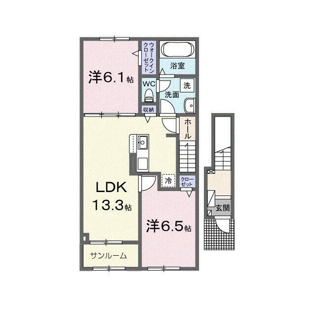 | 間取り | 2LDK(洋6.1・洋6.5・LDK13.3) | 主要採光面 | - |